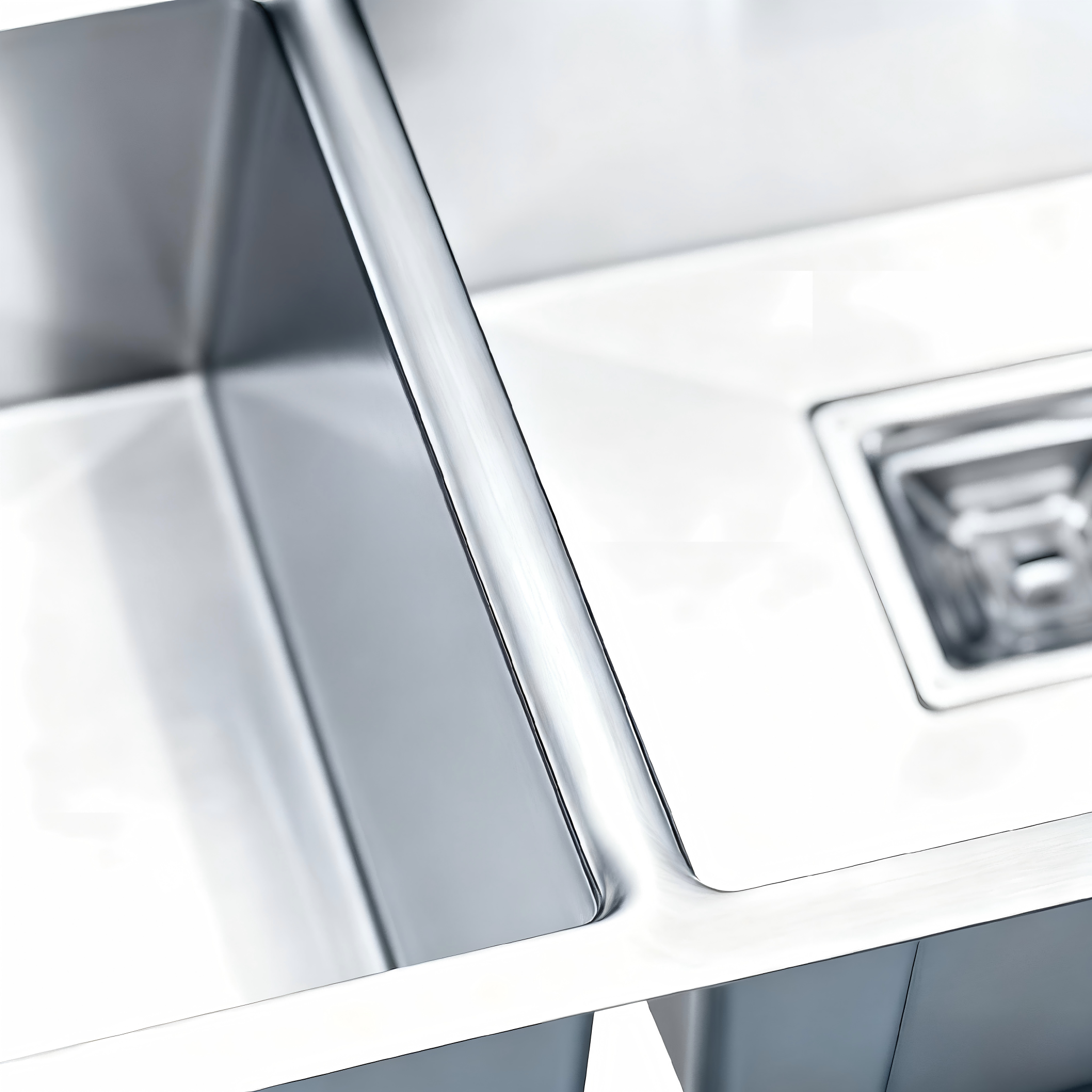 Made of 1.5mm thick 304 food-grade stainless steel, formed by manual TIG welding with smooth, leak-proof welds. The surface features German brushed treatment for scratch resistance, wear resistance, and easy cleaning.