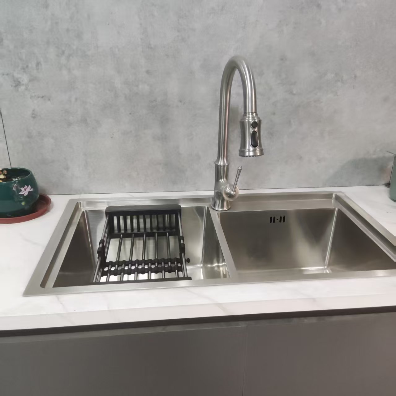 3. Flexible Single/Double Bowl Options: The single bowl saves space for small kitchens; the double bowl supports partitioned cleaning (cleaning + soaking simultaneously). The deepened bowl (≥25cm) can easily hold large cookware, meeting the needs of different families and kitchen layouts.